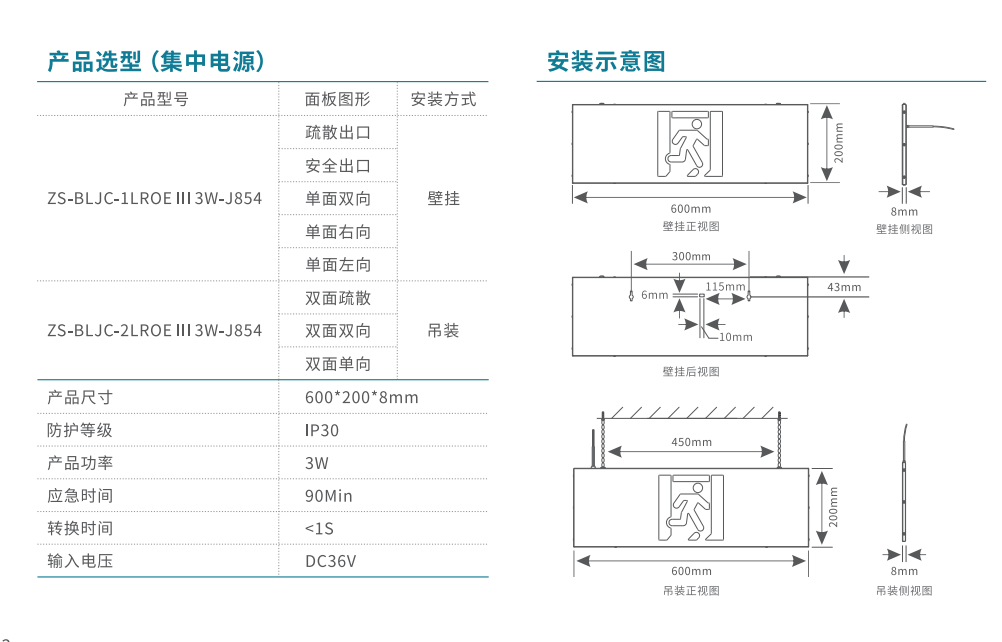 軌道交通-單面疏散出口應急標志燈 | ZS-BLJC-1REⅡ1W-J864 | 壁掛