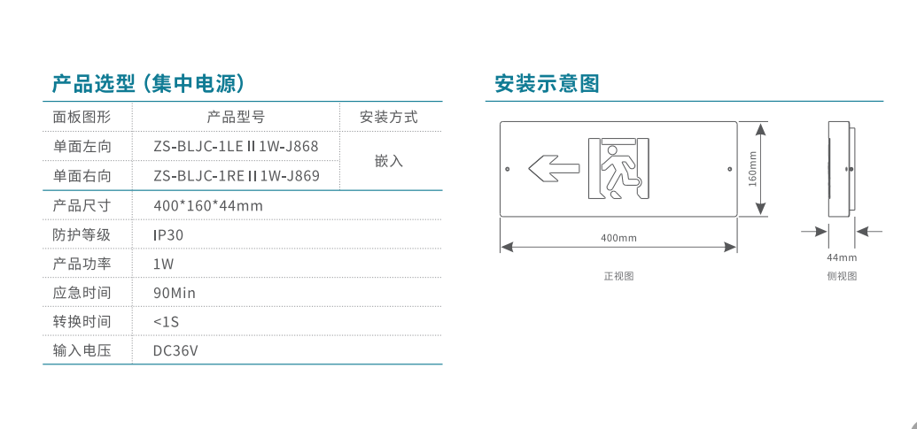 安全出口消防應急標志燈 | ZS-BLJC-1OE II 0.5W-J815 | 嵌入
